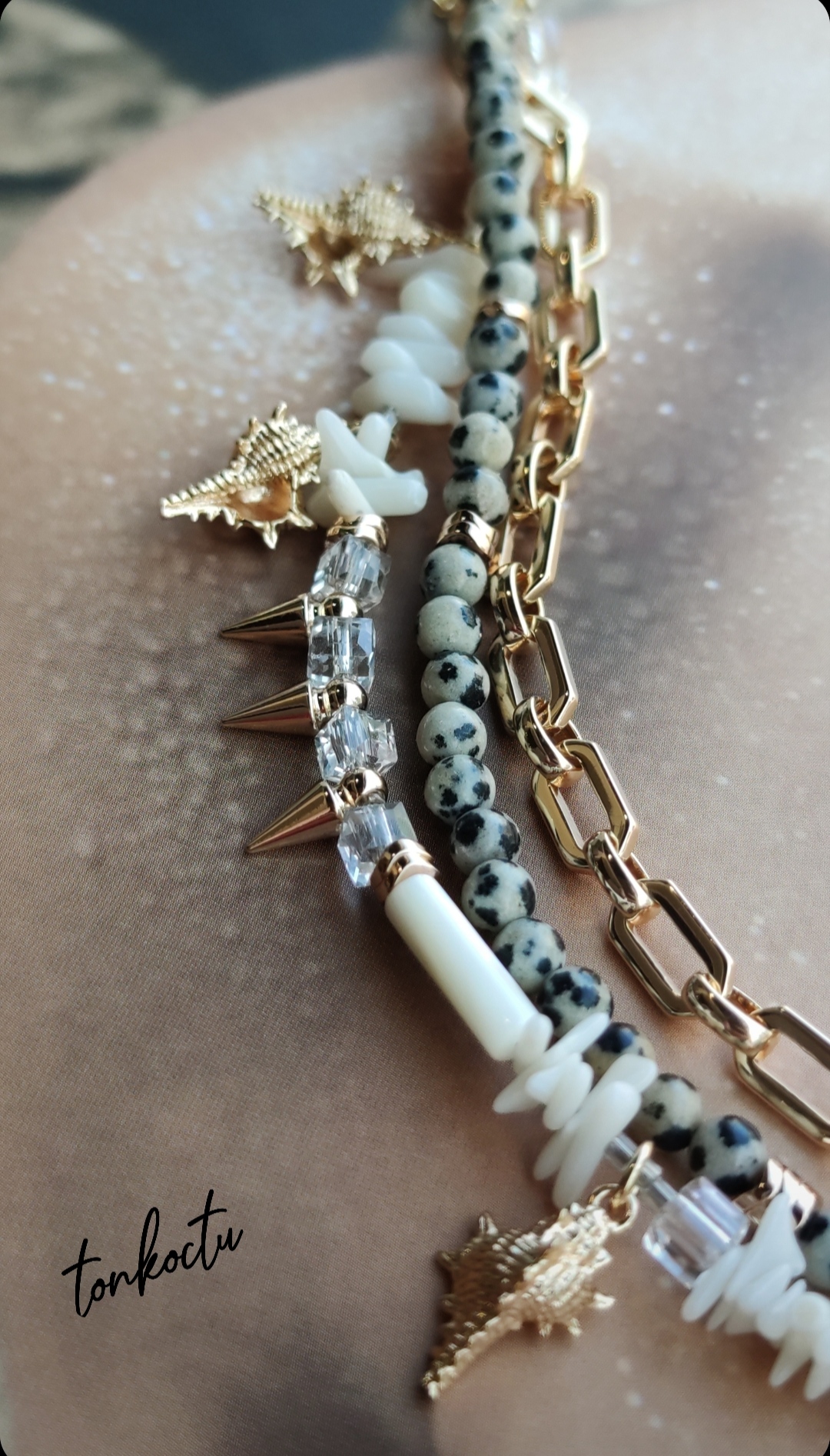 Колье: Длина - 38 см + 5, провис - 9 см Состав: Кварц Вулканическая лава Ювелирная сталь
